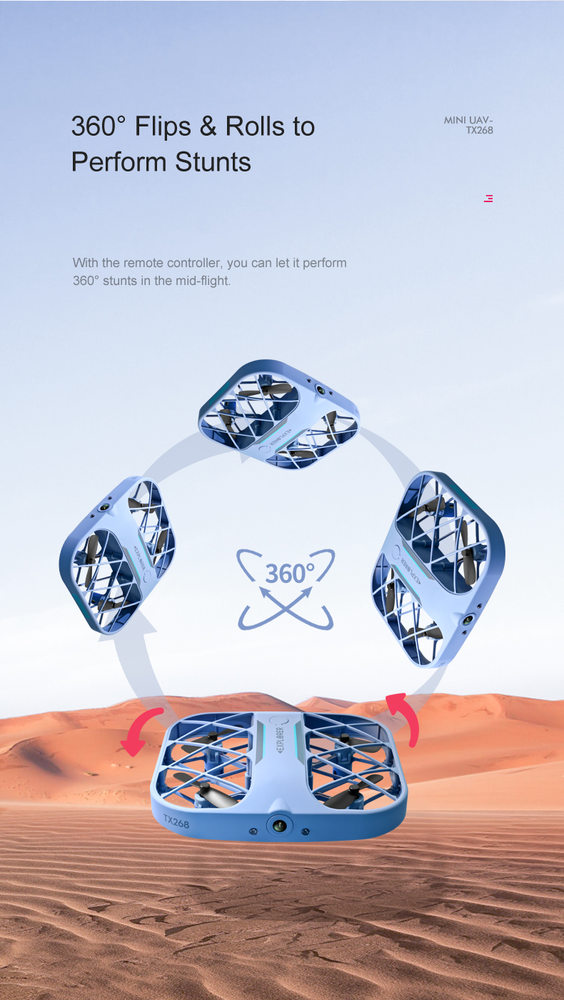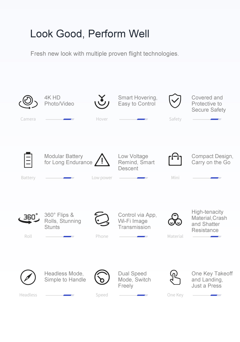 Headless Mode :Orients the quadcopter's flight on the controller. No more worries about the drone getting out of control.