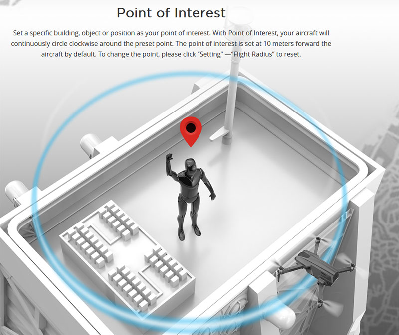 - APP additional features: Follow, Surround, TapFly, Point of interest, electronic fence.