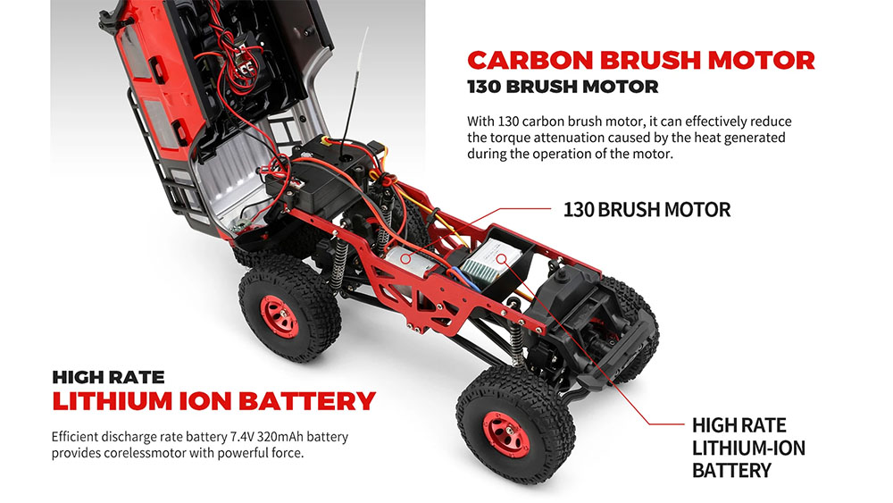 3. Using door bridge design, the chassis space is higher, make it have better passability, and rubber tires has better grip.