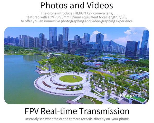 -FPV Real-time Transmission: Instantly see what drone camera records directly on your phone.