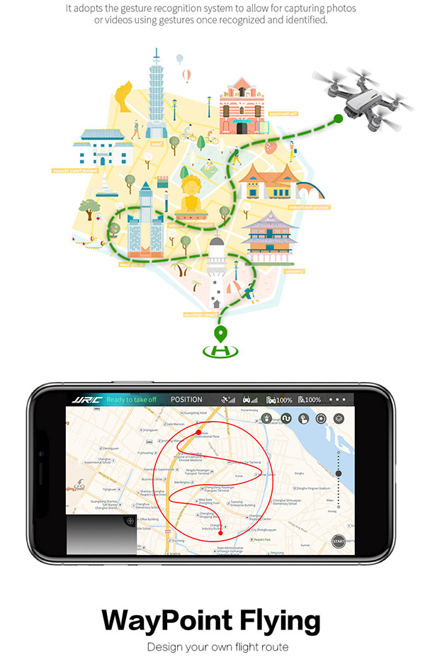 - GPS Positioning: Under GPS mode, when the aircraft receives the signal from satellites, it will position where it is.